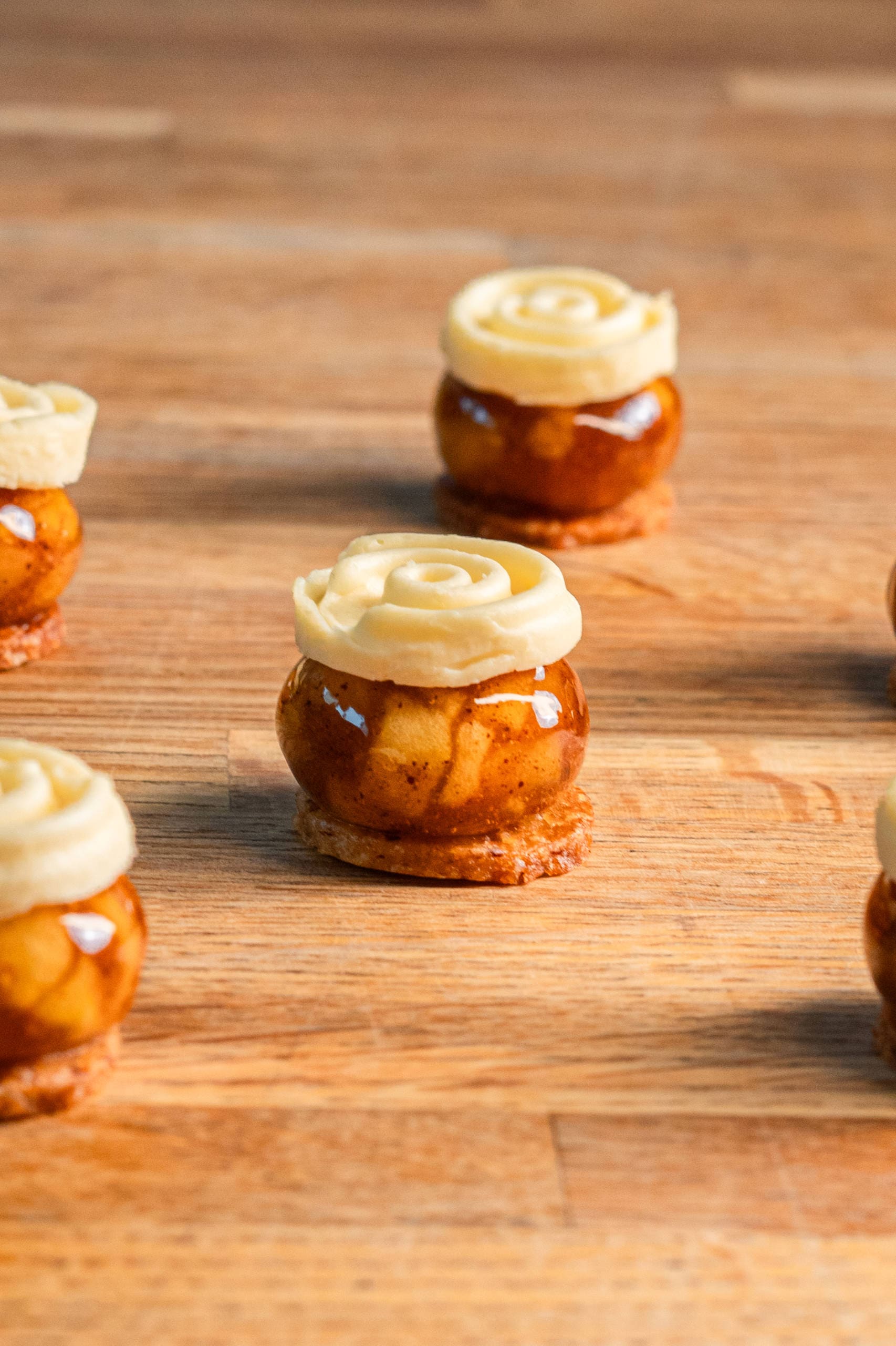Découvrez l’équilibre parfait entre la douceur d’un sablé à la vanille et la gourmandise d’un coussin de pomme parfumé à la cannelle fait maison. Ce dessert est sublimé par une crème onctueuse à la vanille, pour une expérience savoureuse et raffinée à chaque bouchée.