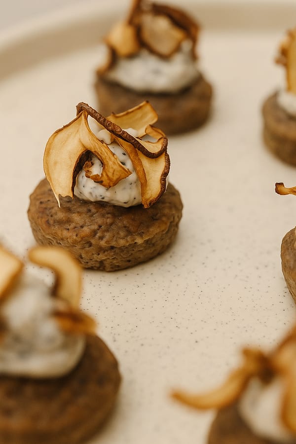 AccueilLes RéceptionsLes Pièces SaléesMoelleux champignon & truffe Moelleux champignon & truffe Mini moelleux au champignons, crème de fromage frais à la truffe d’été et chips de champignons Catégorie : Les Pièces Salées Product ID: 62080 Produits similaires Palet de carotte gingembre & crevette Lire la suite Blinis houmous de betterave Lire la suite Cube de saumon Lire la suite
