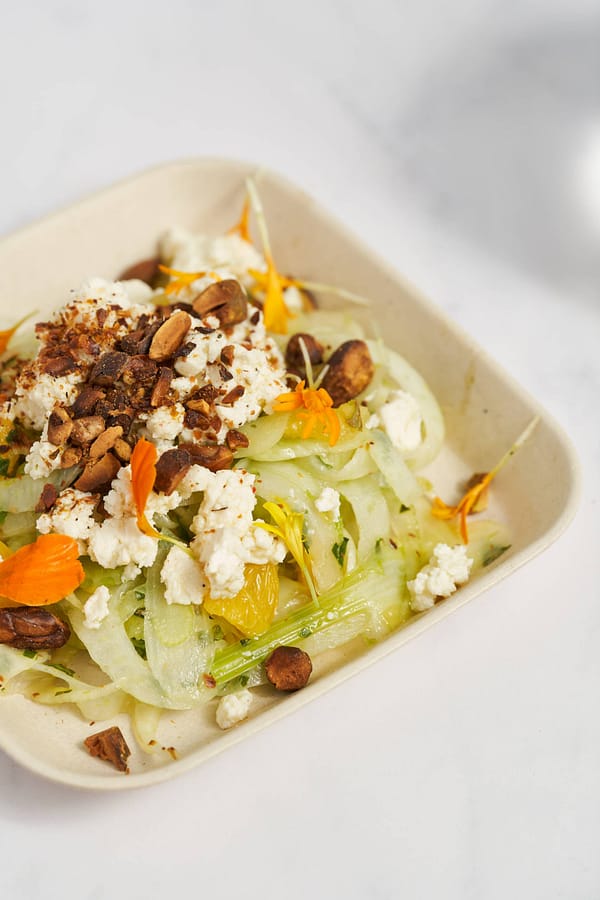 Entrée :  Salade de fenouil à l’orange, feta et pistaches torréfiées