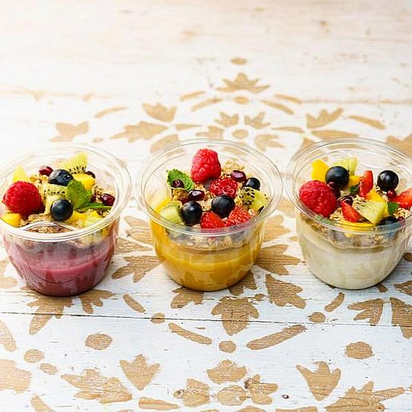 Découvrez notre Smoothie Bowl : une base onctueuse de fruits frais mixés, garnie de notre granola maison croquant et de fruits frais de saison, soigneusement sélectionnés pour leur saveur et leur fraîcheur. Un équilibre parfait entre douceur et vitalité, idéal pour un petit-déjeuner nourrissant ou une pause gourmande.